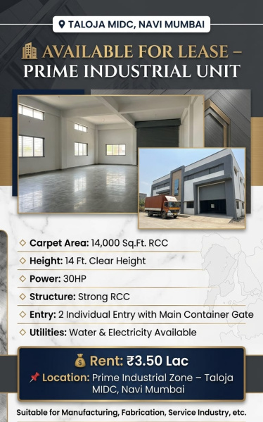 - Prime location in MIDC, Taloja, Navi Mumbai
